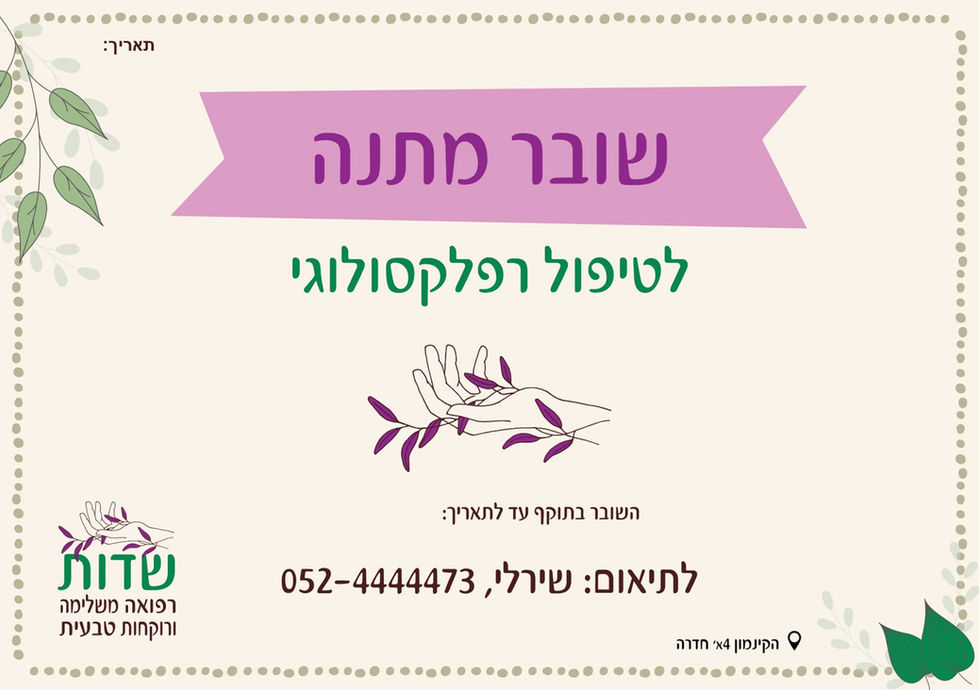 שובר מתנה לטיפול רפלקסולוגי באורך שעה